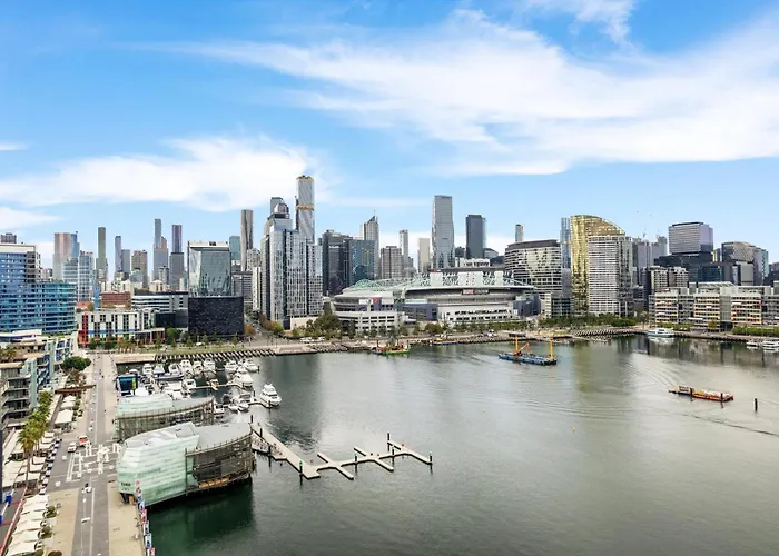 Ein Herd und ein Geschirrspüler werden in einer kompletten Küche ebenfalls angeboten. Der nächstgelegene Flughafen Melbourne Essendon ist 20 km von diesen Unterkünften entfernt, und die Bushaltestelle Waterfront City/Footscray Road ist rund 5 Minuten zu Fuß von der Unterkunft entfernt. Eine Sauna und ein Hallenbad machen den Aufenthalt der Gäste noch angenehmer. Zur Ferienwohnung Urban Retreat Modern Elegance in Docklands gehört auch eine Terrasse.